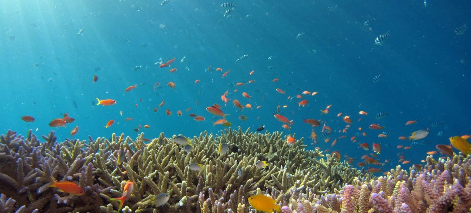 • Look for colorful fish and coral reef